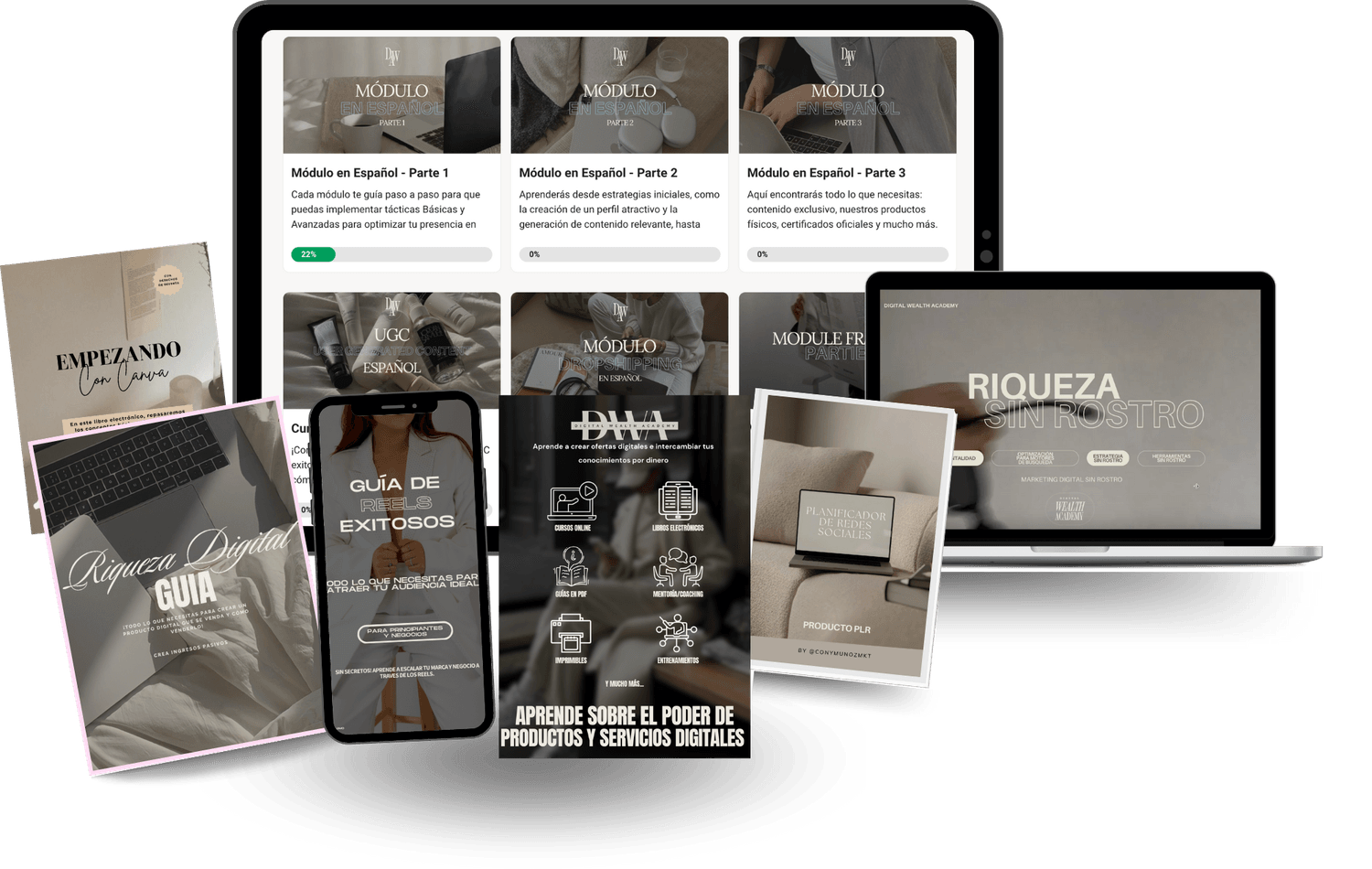 El producto en sí es un curso COMPLETO de marketing digital, que te enseña cómo ganar dinero online con productos digitales y redes sociales