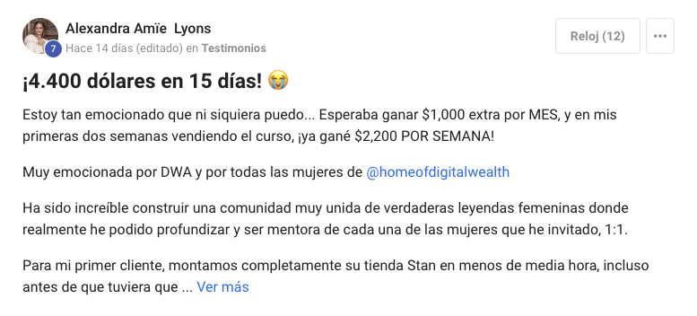"Más abajo en esta página, verás los módulos incluidos en este curso de formación. Recibirás el curso en sí, una comunidad gratuita de propietarios de negocios con ideas afines de todos los niveles de experiencia dispuestos a ayudar, y por supuesto, acceso a mí mismo si tienes alguna pregunta."